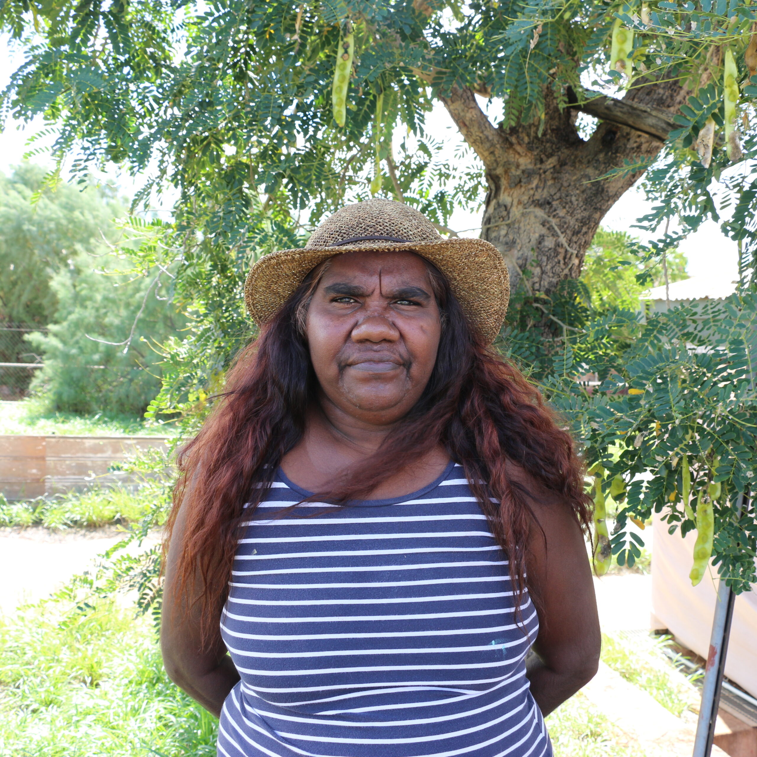 Renee Wally is part of Yinjaa-Barni Art Centre. Yinjaa-Barni Art is a collective of Aboriginal artists who predominantly belong to the Yindjibarndi language group and whose ancestral homelands surround the Fortescue River and Millstream Tablelands.