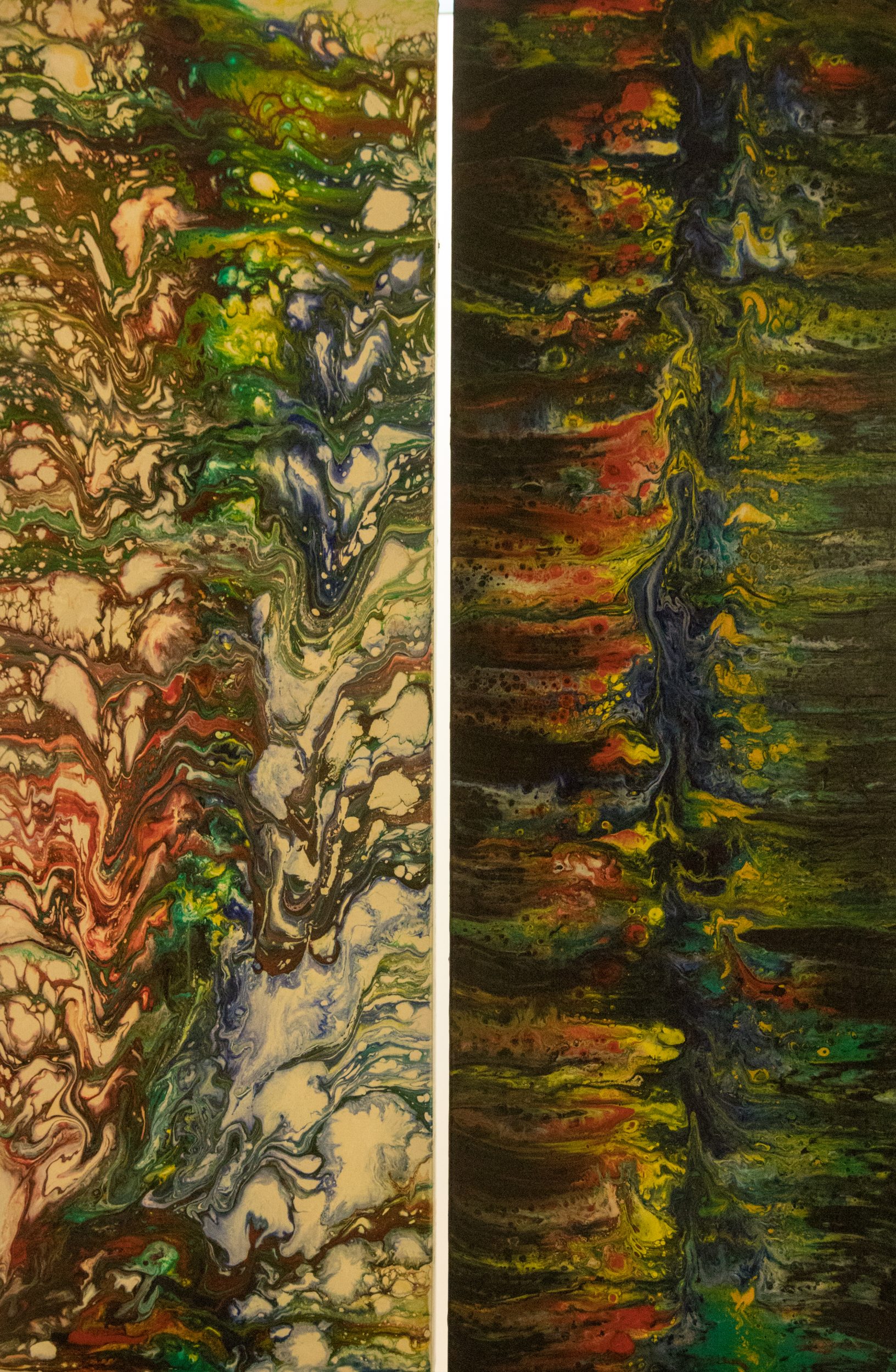 Abstract interpretation of the Garden of Eden by day and by night. The colours coming through the water flowing, while both are beautiful they are still very different.