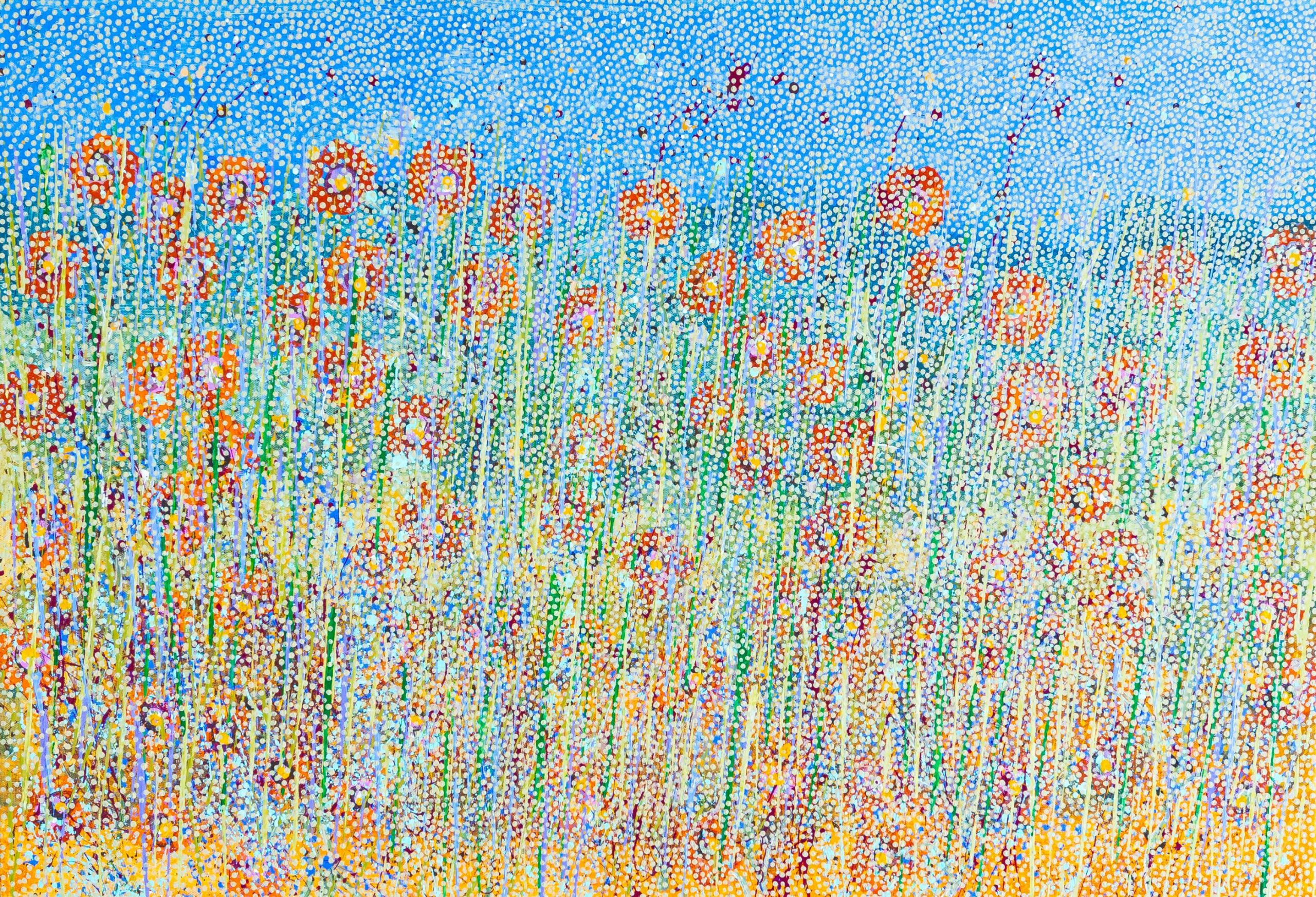 The Sturt Pea has a vibrant red flower. It has a succulent sweet juice that can be eaten. In this painting you can see the Sturt Peas hidden amongst the Spinifex and early morning mist of the Pilbara country.