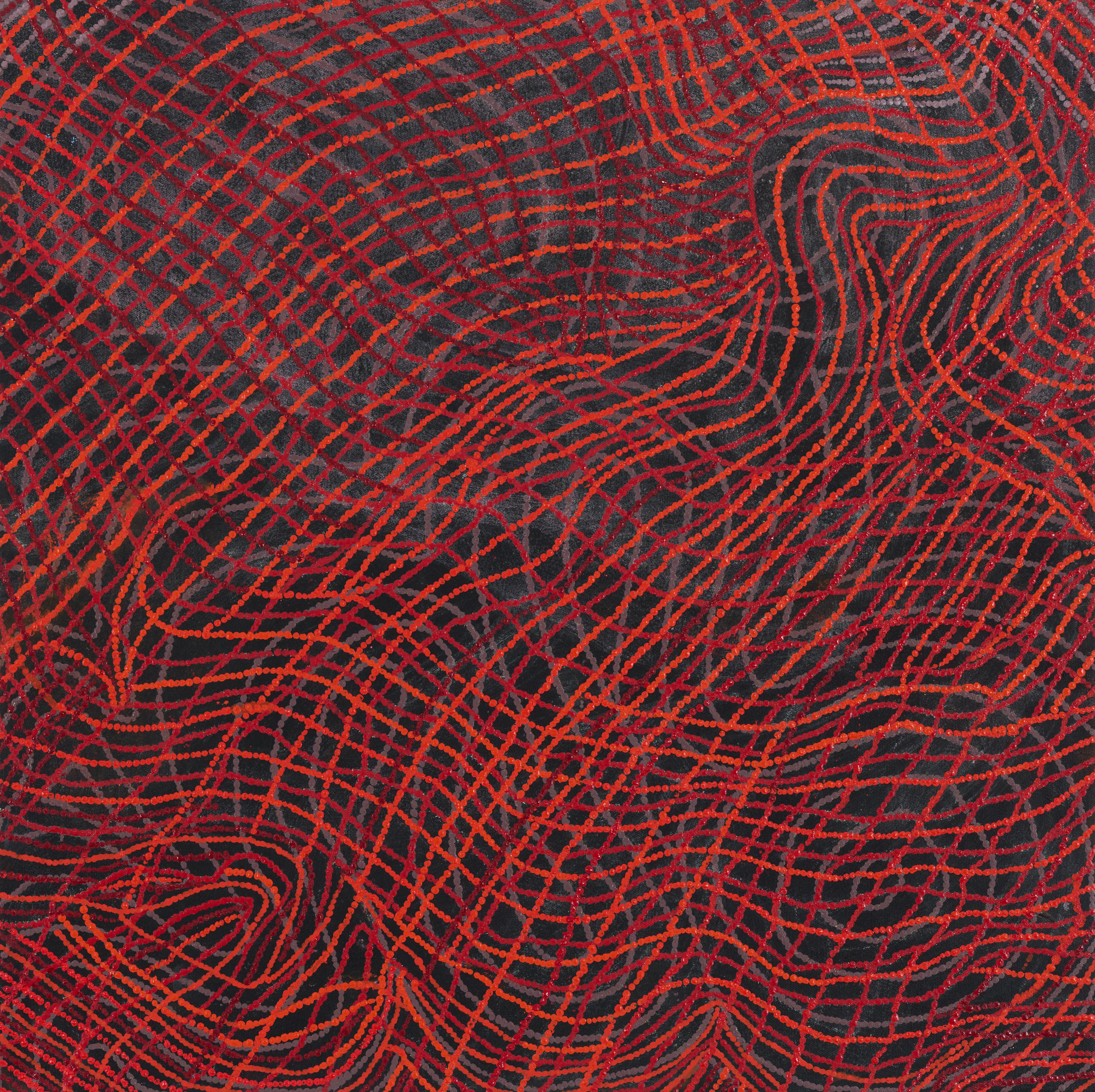 This artwork is a collaboration between two sisters Aileen and Allery Sandy. These sisters were inseparable. In 2023, Aileen passed away and the canvas she was working on at the time was left unfinished. Almost one year later, her younger sister Allery completed her painting as an act of enduring love for her thurdu (older sister) who now rests with God.