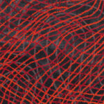 “There is a line that is grey and its a circle. The circle reminds me of the love that my sister had not only for myself and my immediate family but for the whole community. Wherever she went she spread her love, cared for each and every one because we are all related. Family is a strong thing has been in her life ever since she was young, she was always caring for people. Wherever they came from near and far. Always making sure families had beds and food. The lines of orange and red represents the Country, our Pilbara Country that she loved going out telling stories and teaching her young ones about the culture and what Culture meant to her and our ancestors who travelled through land and Country on foot in the early days. That’s the love that she had for the people around her because of the love that she had given to her by her ancestors, our grandmothers, our mums and dads. Today we still miss her and her face is always there before us. She may be gone but the spirit of her is still within us and still in the art centre. We sometimes pretend that she is still there. And it gives us strength and courage to continue our work with our artwork and continue sharing stories to our children and grandchildren. She is dearly missed but the greatest thing for me, being a child of God and a Believer, knowing that the Lord Jesus has set me free, in her last hour of her illness, she reached out and accepted Jesus into her life. That is why I have peace deep within me knowing where my sister is today. It took me a while to settle my spirit, to grieve over my sister at that time when she couldn’t finish this painting. It took me a month to really sit and relax and say ‘Yes I will finish this painting for my sister’ because of the love that she and I have for each other. We were never apart, we were always travelling together. Doing fishing, travelling to and from the art centre and always with our grandchildren. I miss her being alongside me. Whenever I drive I think about my sister, the time I would tell her to look both ways for me because I was driving. And we would all look at the road together and I’d say ‘look to the side and see if there’s traffic coming for me’. That’s a memory I have of her. finishing this painting was a privilege and honour for her to know the love between us is very strong and I still miss her today. This is the walk of life with me and her, we journeyed in that circle and we moved and expanded everywhere else where we needed to. Doesn’t matter if that’s with our family or being involved with community, we extend ourselves like elastic being pulled. It stretches us so far but we did not mind because we loved being part of a community and just sharing our love and our knowledge and our teaching to all walks of life. A journey filled with love, like an elastic band. We stretch so far”